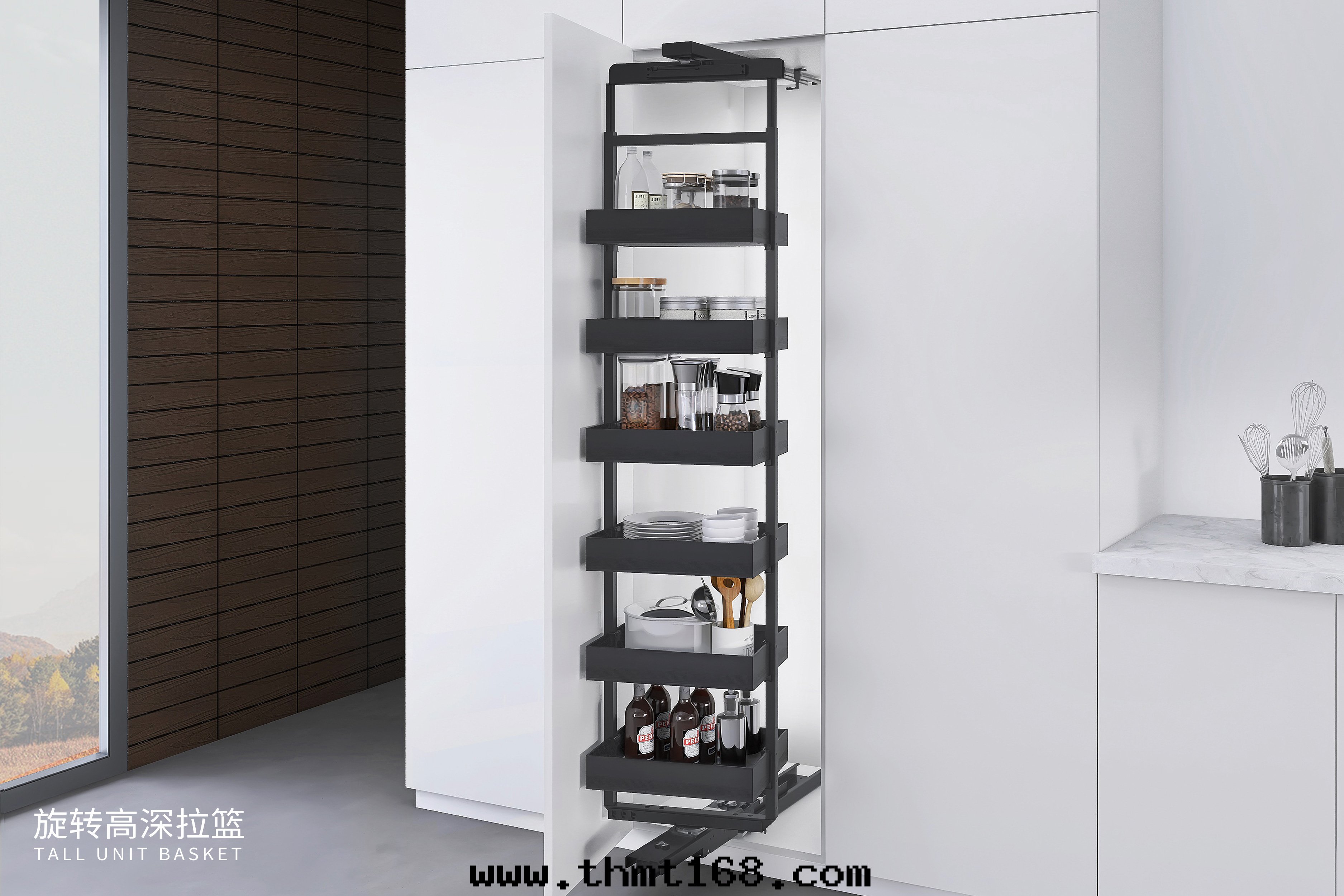 通(tòng)常放(fàng)置在(zài)爐台櫃两(liǎng)側,利用(yòng)小空(kōng)间收(shōu)納起(qǐ)不(bù)規則的(de)工具與(yǔ)調味瓶(píng),将砧闆、瓶(píng)裝(zhuāng)調料、粉末(mò)調料和(hé)各(gè)式烹調工具盡納其(qí)中(zhōng)。为(wèi)烹饪預留更(gèng)多的(de)空(kōng)间,穩固分(fēn)隔不(bù)傾倒,可(kě)随意(yì)抽出清(qīng)洗。