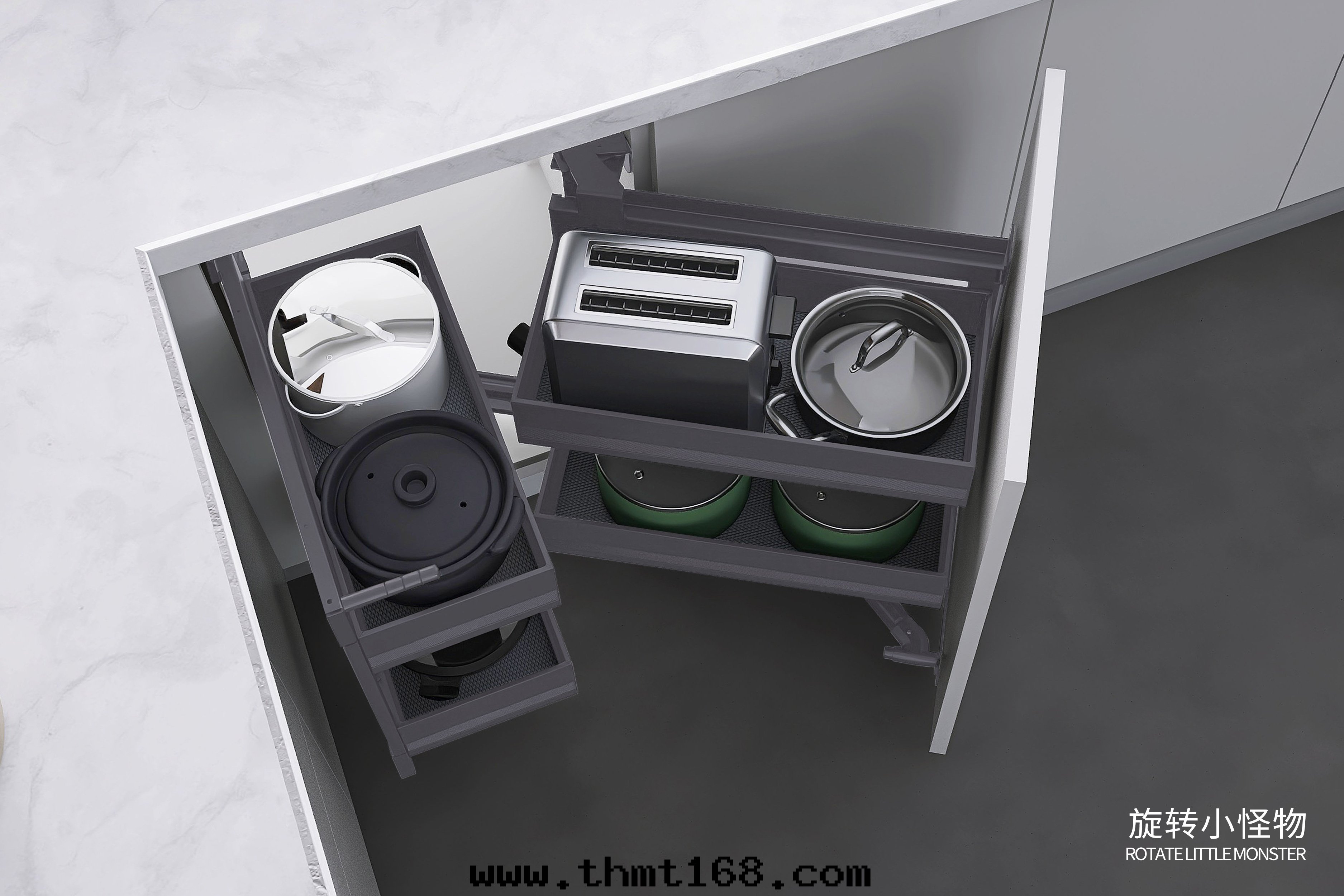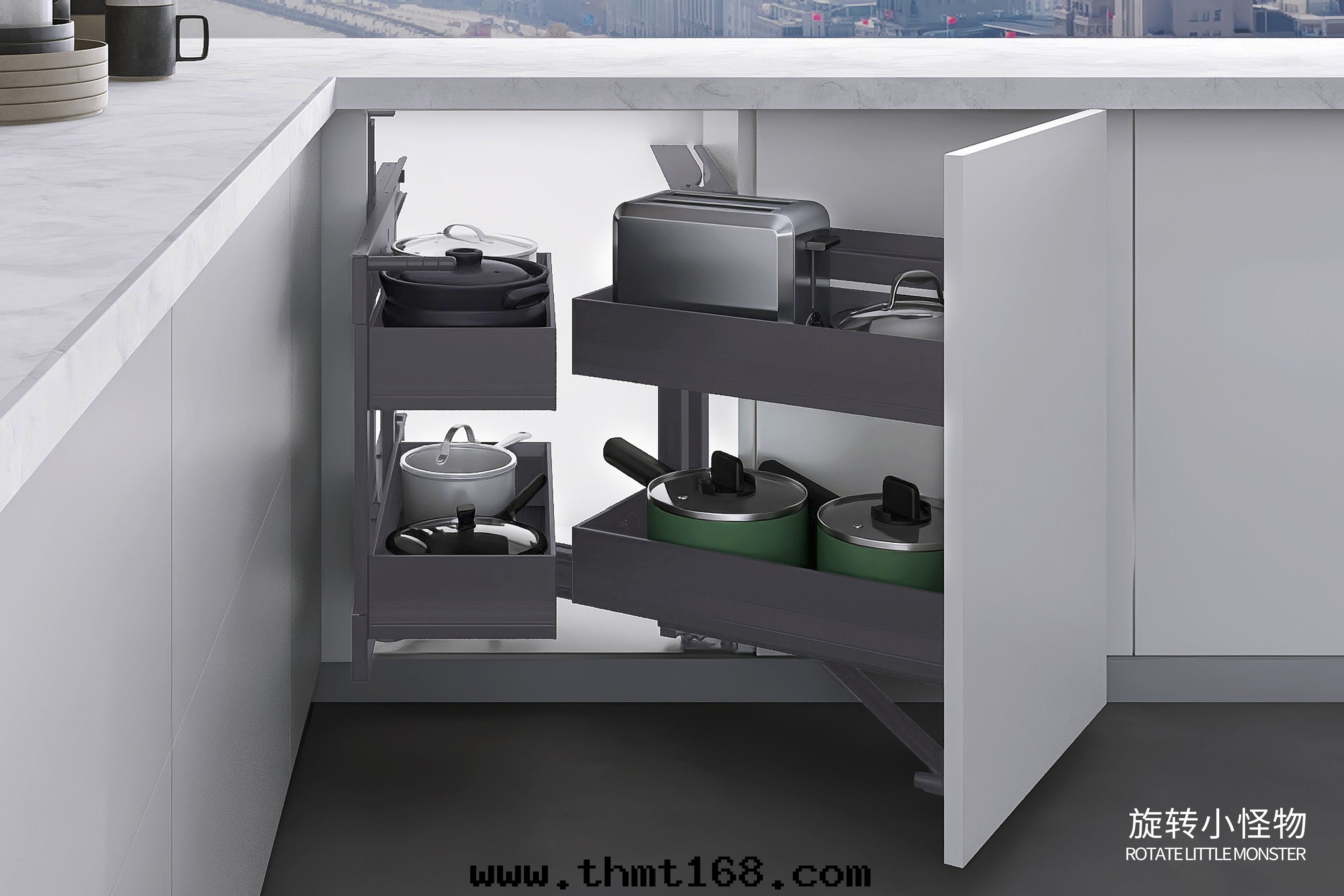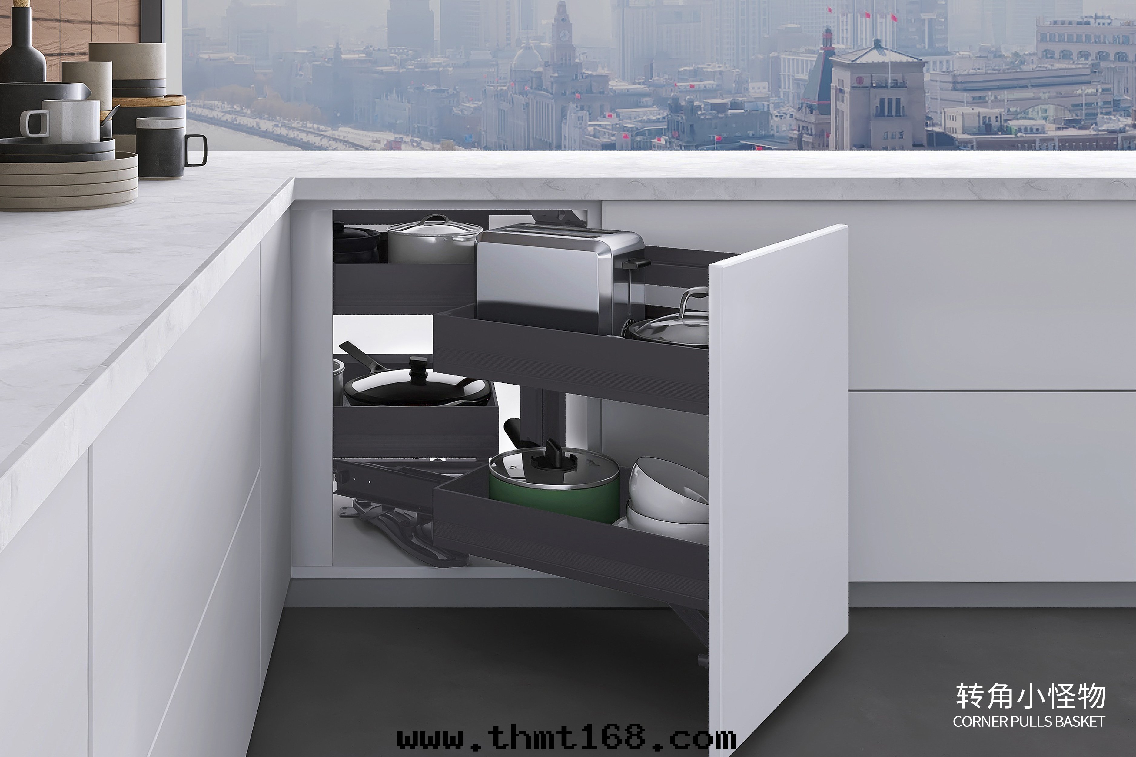 轉(zhuǎn)角(jiǎo)拉籃不(bù)僅方(fāng)便拿取物(wù)品,而(ér)且(qiě)收(shōu)納能(néng)力也(yě)非常的(de)強(qiáng)大(dà),可(kě)以(yǐ)裝(zhuāng)下(xià)日(rì)常廚房(fáng)中(zhōng)很多的(de)雜物(wù),特(tè)别适合面積不(bù)大(dà)的(de)L型或(huò)者U字(zì)型廚房(fáng)。